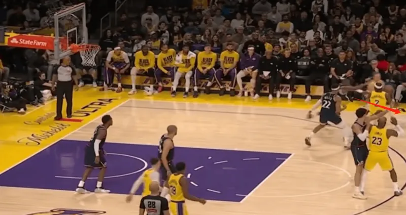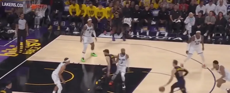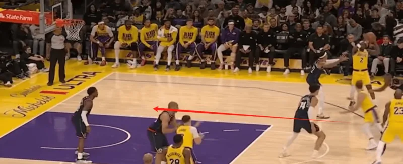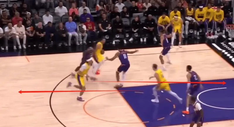 然而他这样的无球跑动 拉开了湖人的进攻空间 让艾顿可以顺下 并且右侧底角里夫斯也是空位