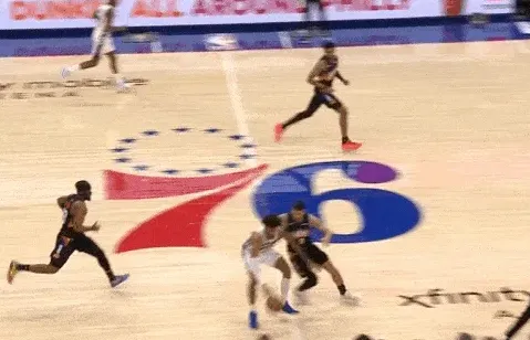见艾维接球突破,古德温立即站住协防位置封堵突破路线,